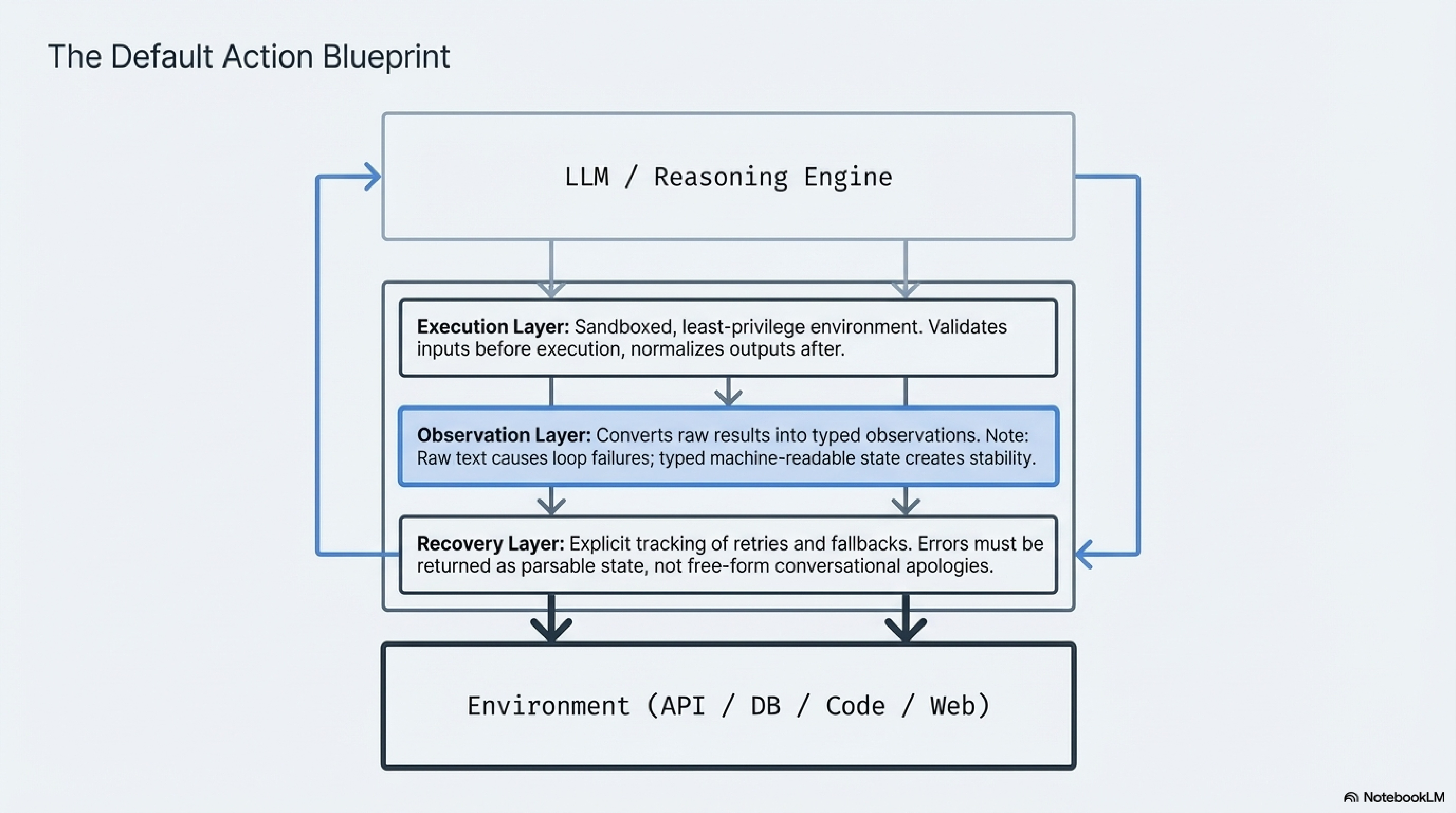 Even correctly formed intent is not enough. The next seam is execution itself. A system has to run the action inside a permission boundary that matches the task, with checks that keep obvious nonsense from reaching the environment. If the workflow needs read access to a database, read access is enough. If it needs to execute code, the code runs in a sandbox rather than against the open surface of a production machine. This part of the loop often receives less attention than planning because it looks mundane beside the spectacle of a model making decisions. It is not mundane at all. It is where architecture decides whether a small generation error becomes a recoverable miss or a live incident. And when the task itself spans multiple specialist capabilities rather than one narrow surface, orchestration work like HuggingGPT becomes relevant because the controller has to route execution cleanly instead of pretending one generic node can do everything.