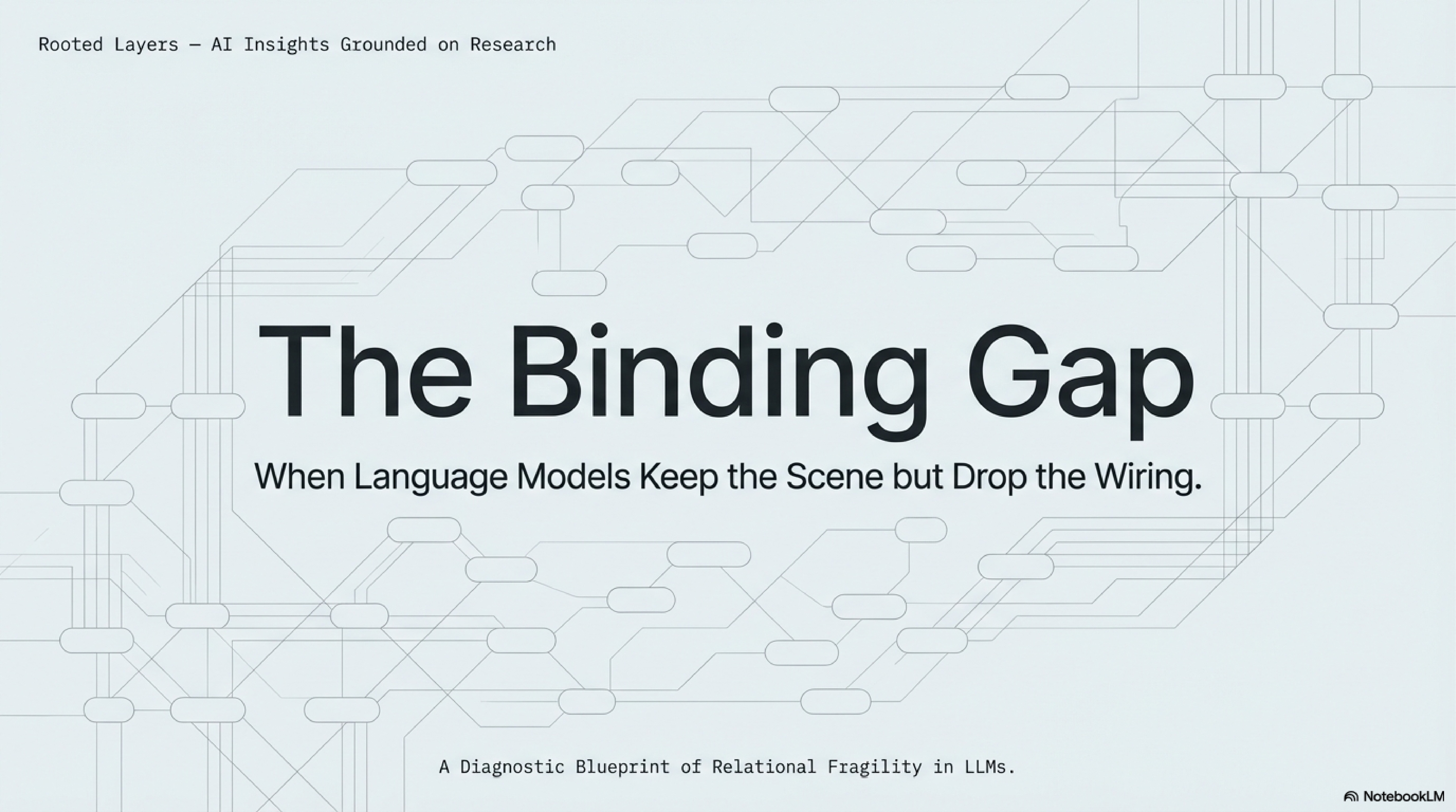That failure deserves a more precise name than hallucination or ignorance. I will call it the binding gap: the class of failures in which a model preserves enough semantic material to sound close to correct while losing the exact attachment that makes the answer faithful. Inversion, reassignment, attribution, precise numerical reconstruction. The failure becomes visible exactly where these are required. The outputs that matter here are rarely absurd. They are annoyingly adjacent to truth. The model keeps the scene while dropping the wiring. It remembers the paper but misplaces the citation. It keeps the variable names but assigns the number to the wrong pair.